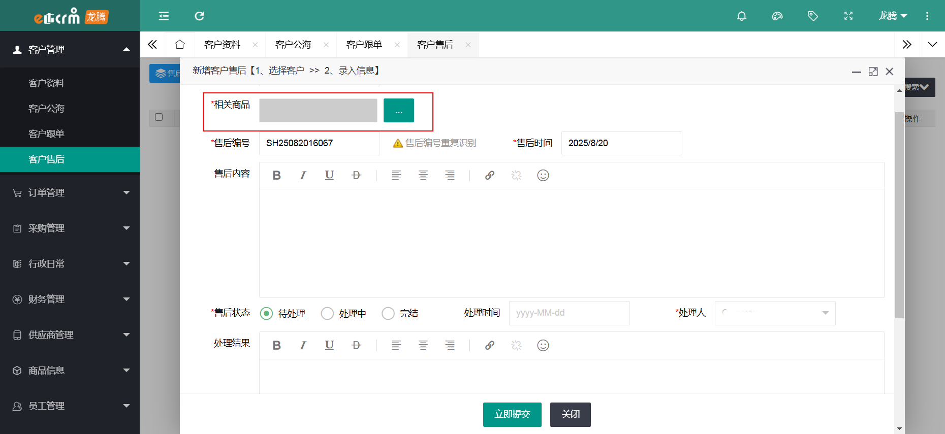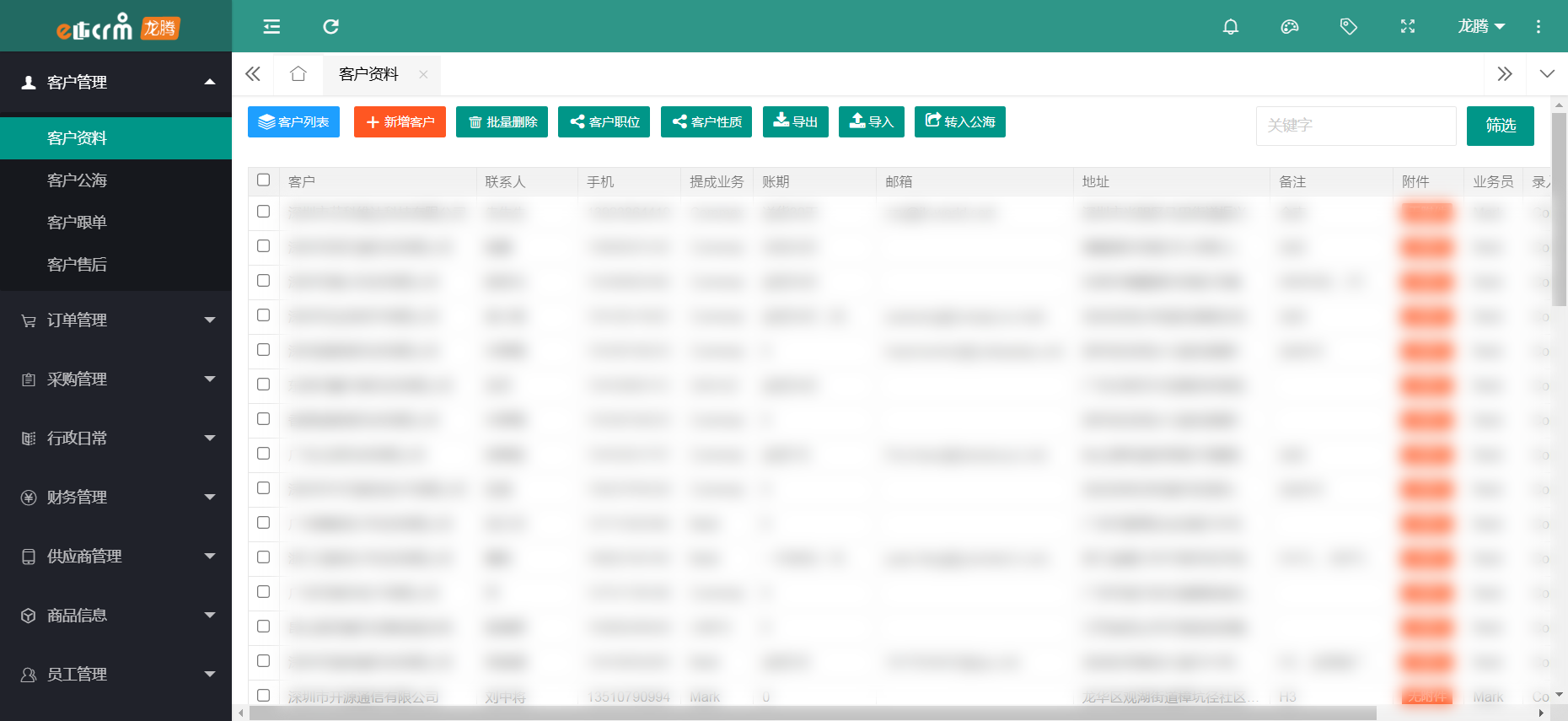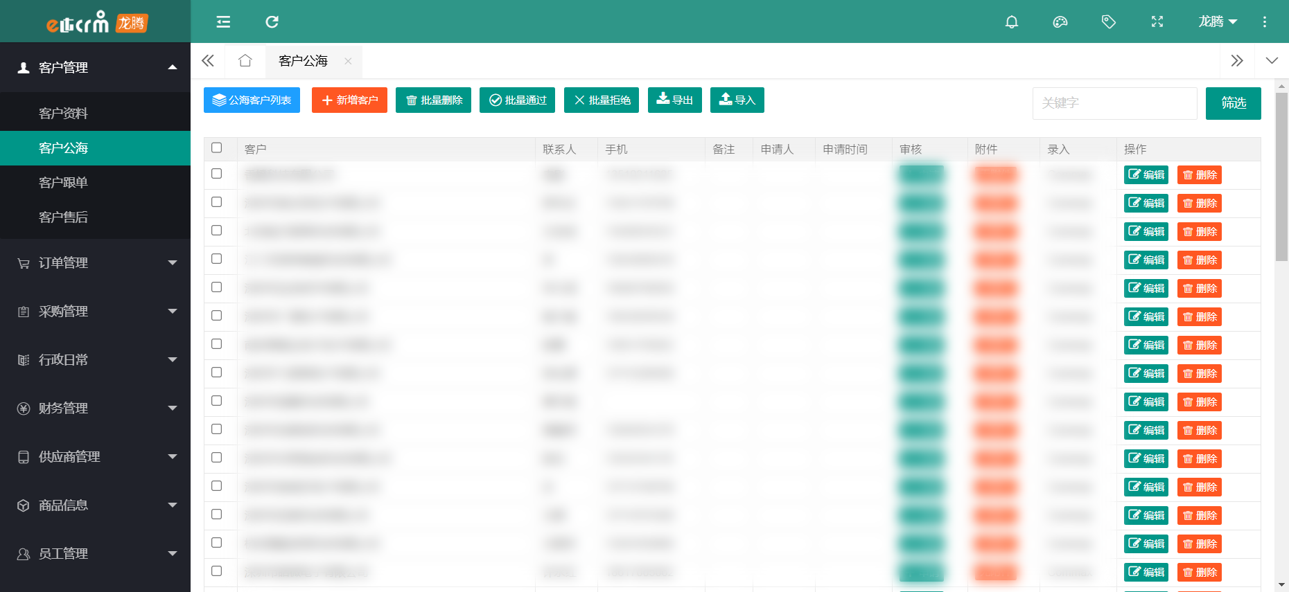 龙腾CRM满足企业全方位的销售跟进、智能化服务管理、高效的沟通协同、图表化数据分析及字段随意修改添加等完善的服务体系。