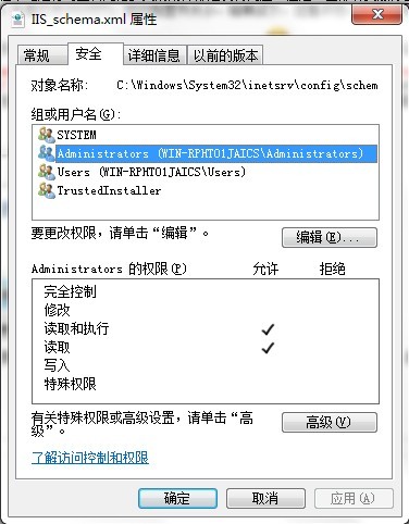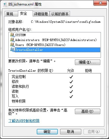 我们看到,administrator只有读取的权限,并没有写入和修改的权利,我们再看下面有个TrustedInstaller