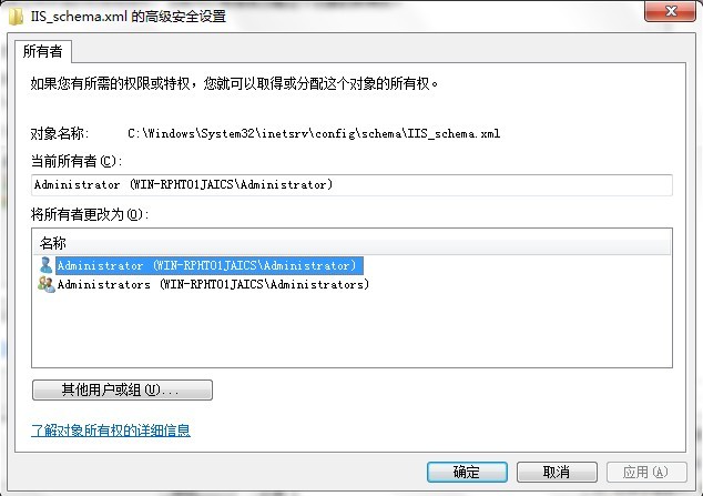 不用管它,单击确定,这时,我们看当前文件的所有者变成administrator了,如下图: