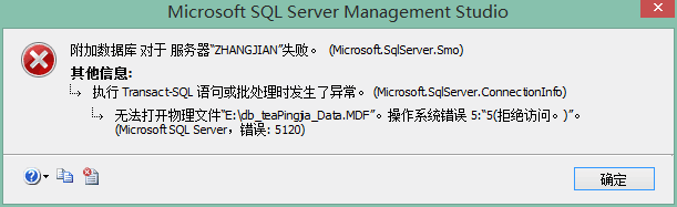 要附加的数据库文件权限不足