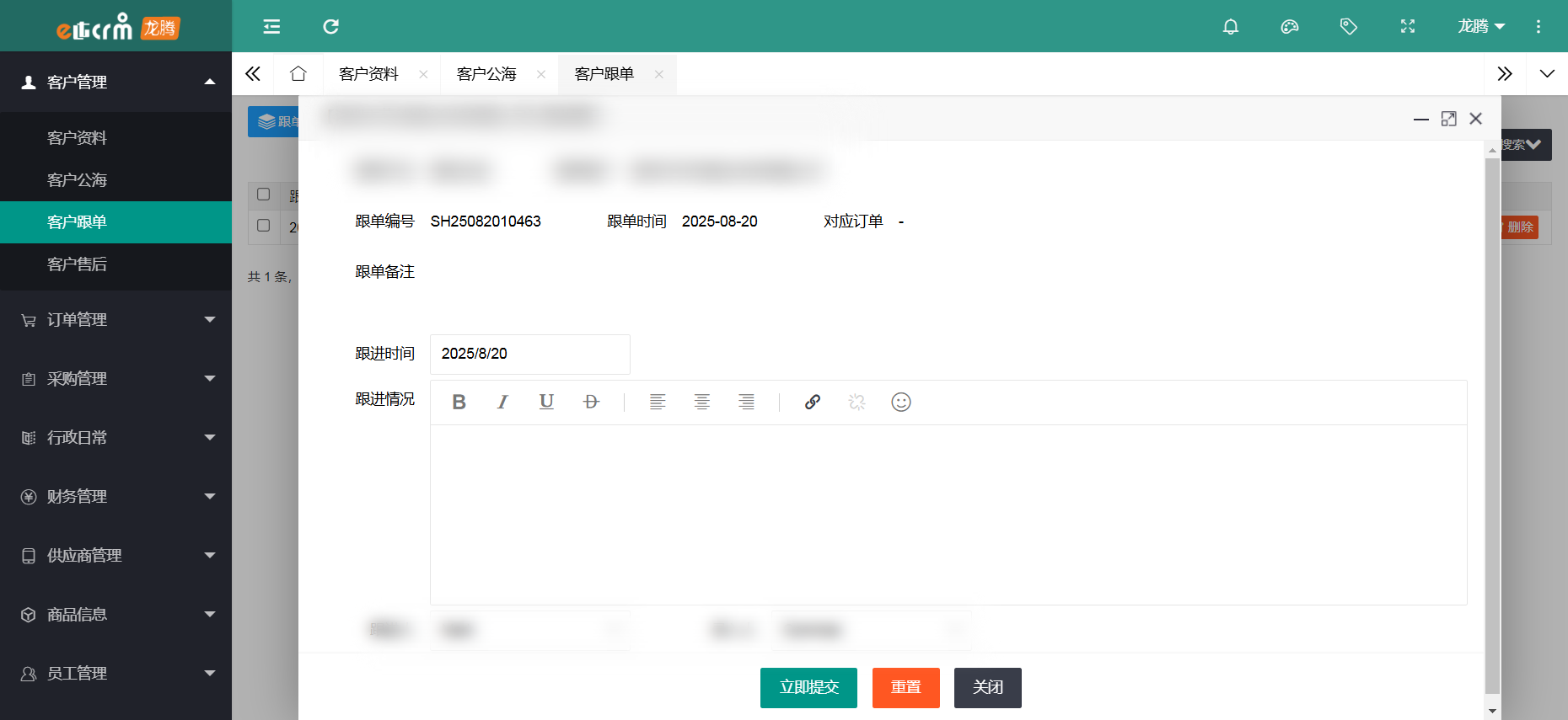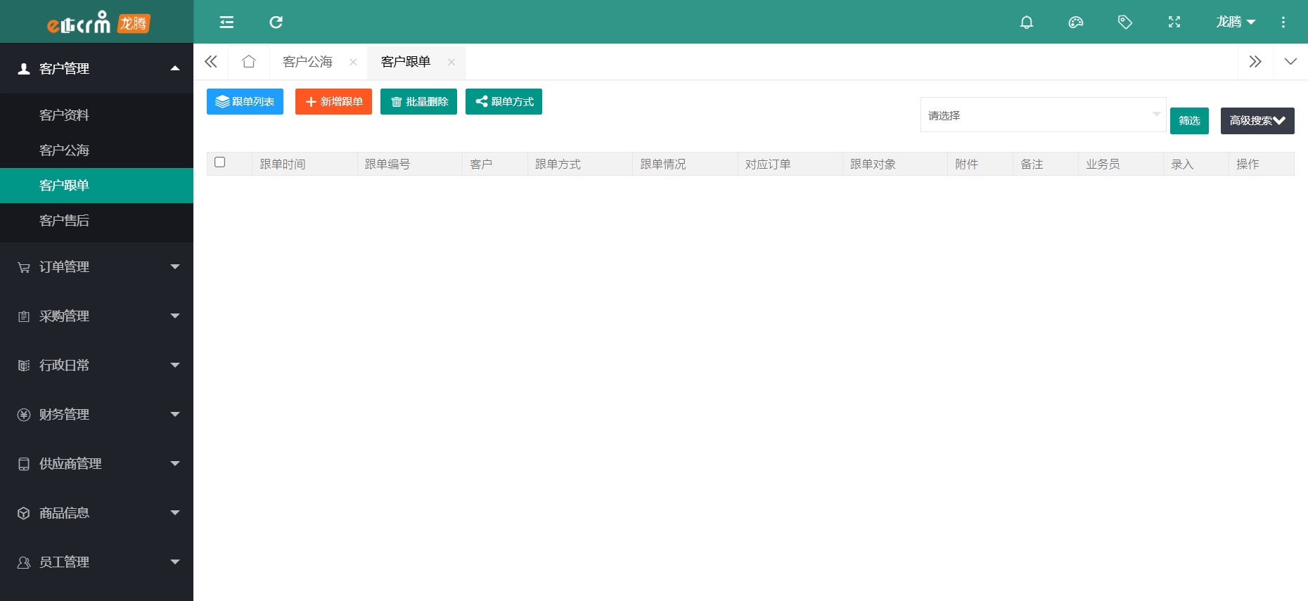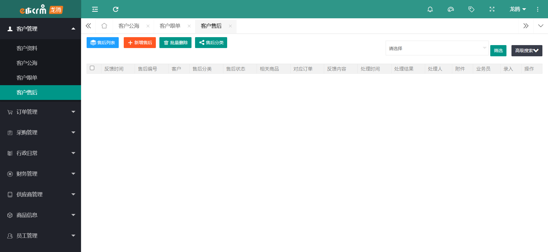 龙腾CRM满足企业全方位的销售跟进、智能化服务管理、高效的沟通协同、图表化数据分析及字段随意修改添加等完善的服务体系。
