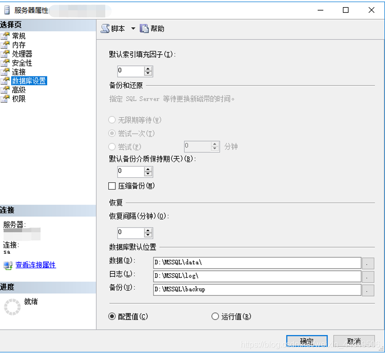 1.内存的配置,这里默认是最大值,若是数据库服务器的话,可以不必调整,以便于数据库能够最大内存的使用